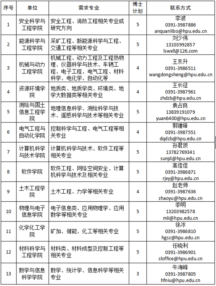 2.联系地址:河南省焦作市示范区世纪路2001号河南理工大学人事处,邮编:454003。