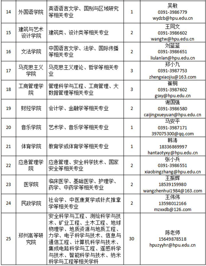 2. 联系地址:河南省焦作市示范区世纪路2001号河南理工大学人事处,邮编:454003。