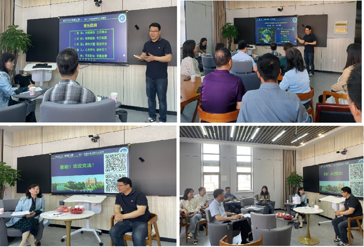 郑德顺分别从教学(站稳讲台立足根本)、科研(教研相长守正创新)、科普(胸怀大爱服务社会)、育人(心系学生桃李天天)、未来(不忘初心明德至善)五个方面与在场教师进行分享。首先,郑德顺强调“教学是教师的本职工作,要站稳讲台,要以学生的视角来组织教学”,他结合自己16年的从教经历和教学经验,为大家传授如何做一个“底蕴丰厚”的好教师;其次,他从如何思考科研课题,如何从学科方向出发联系实际凝练科学问题等出发,同时结合自身主持的四个国家自然科学基金的撰写经验和申报历程,为老师传授“科研反哺教学、教学促进科研”的宝贵经验;接着,他从地质科普公益活动方面分享自己的科普经历,他指出“科学思维培养要从娃娃抓起”,他热心公益活动,胸怀大爱,淡泊名利,勇于奉献的精神深深感染了在场的每个人;最后,他从立德树人方面以丰富案例为教师们分享了他培养学生成人成才的心路历程,他指出“要用父母对孩子的爱一样来对待每一位学生,施教过程中对学生宽严并济、理解尊重、践行大爱精神”,他对学生无私的爱感动了现场的每个人。