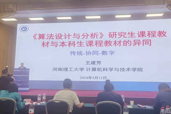 本网讯(通讯员 庞晓艳)5月11日至12日,由中国学位与研究生教育学会组织的首届研究生课程与教材建设大会在北京召开。计算机学院副院长于金霞教授带队、研究生导师侯守明教授、王建芳教授共三人参会。其间,王建芳应邀作主题为“《算法设计与分析》研究生课程教材与本科生课程教材的异同”会议报告。