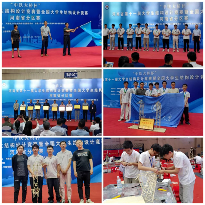 本网讯(通讯员 秦本东 李翰一)5月10-12日,由河南省建设教育协会主办、郑州航空工业管理学院承办的“中铁大桥杯”河南省第十一届大学生结构设计竞赛暨全国大学生结构设计竞赛河南省分区赛在郑州航空工业管理学院举行。河南省住房和城乡建设厅、河南省建设教育协会、郑州航空工业管理学院校领导及省内各高校土木学院领导等出席开幕式并现场观赛。