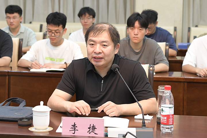 李捷传达了教育厅有关特色化示范性软件学院建设工作考核的精神,并代表专家组介绍了考察的工作依据、工作流程和考察目标。他指出,本次工作的主要任务是通过实地考察,了解特色化软件学院建设运行情况,并加强中心的示范引领作用,为我省培养软件产业高质量发展提供人才。