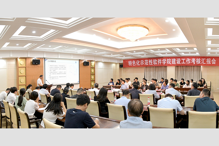 软件学院院长贾宗璞从立德树人、建设规划、人才培养、保障体系、建设成效、特色化办学等方面汇报了学校特色化示范性软件学院的建设情况。