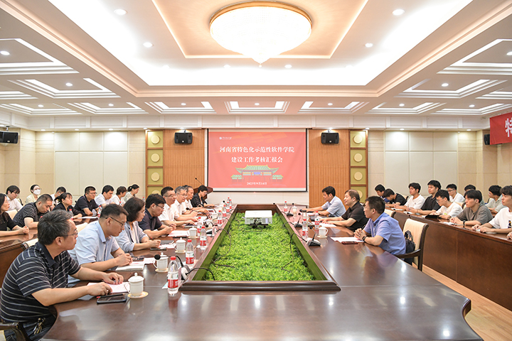 本网讯(通讯员 韩秀娟/文 记者 李为群/图)9月14日上午,省教育厅特色化示范性软件学院考核组莅校考核我校特色化示范性软件学院建设工作,考核汇报会在力行楼一楼会议室召开。考核组组长、郑州航空工业管理学院副校长李捷,考核组成员、河南大学特色化示范性软件学院院长何欣、河南工业大学特色化示范性软件学院院长张庆辉出席会议,副校长赵同谦出席会议并致辞,会议由教务处处长牛海鹏主持。软件学院相关负责人、教师代表及学生代表参加会议。