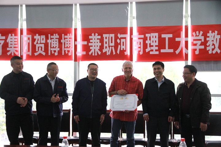 材料学院副院长曹新鑫为贺博博士颁发了兼职教授聘书,并代表学校对贺博博士的加盟表示热烈欢迎,同时希望贺博教授充分发挥自身优势,指导帮助学院学科专业建设、科研平台和团队建设,助力学院各项事业取得更加丰硕的成果。杜小战指出,今年7月18日楼阳生书记视察新开源集团指出,企业要多寻找有源活水,发展才是硬道理。新开源集团挖掘焦作本地新材料产业基础优势,是焦作市“双新”产业的八大金刚,与河南理工大学的深入合作也是焦作市贯彻楼阳生同志“坚定依靠创新驱动转型,依靠人才支撑强市”精神的具体举措,市委组织部来架起桥梁,引导企业在发达国家和地区与先进的科研院所开展协同创新,使河南理工大学和新开源集团强强联合,推动创新发展。