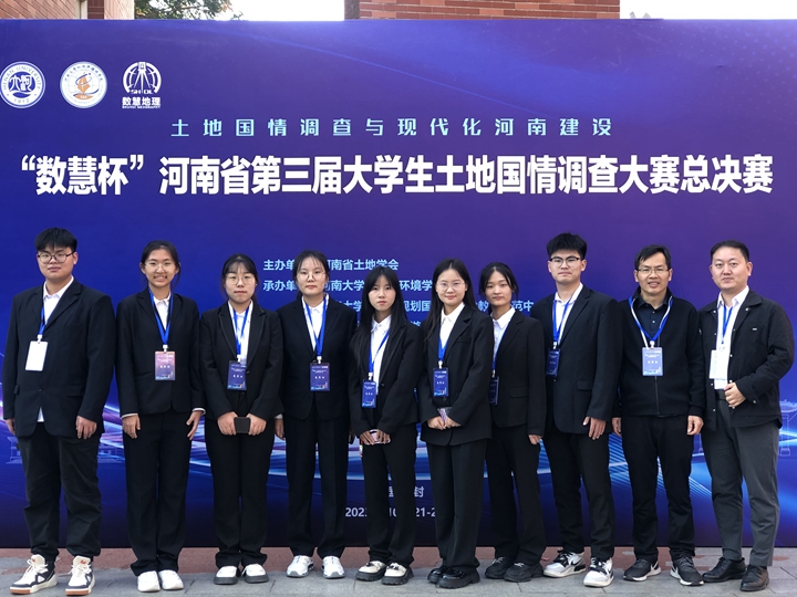 本网讯(通讯员 孙艺通)10月22日,在河南省自然资源厅的指导下,由河南省土地学会主办,河南大学地理与环境学院承办,河南数慧信息技术有限公司协办的“数慧杯”河南省第三届大学生土地国情调查大赛在河南大学金明校区举行并圆满落幕,我校代表队荣获一等奖3项和二等奖1项,并获得优秀组织奖。