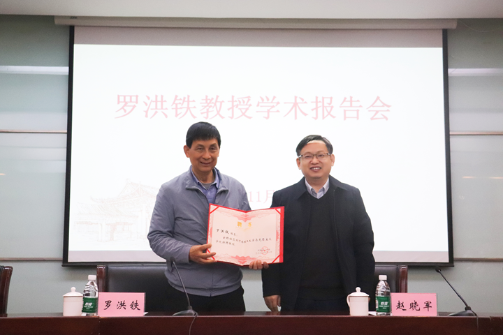 校纪委书记赵晓军为罗洪铁教授颁发聘书