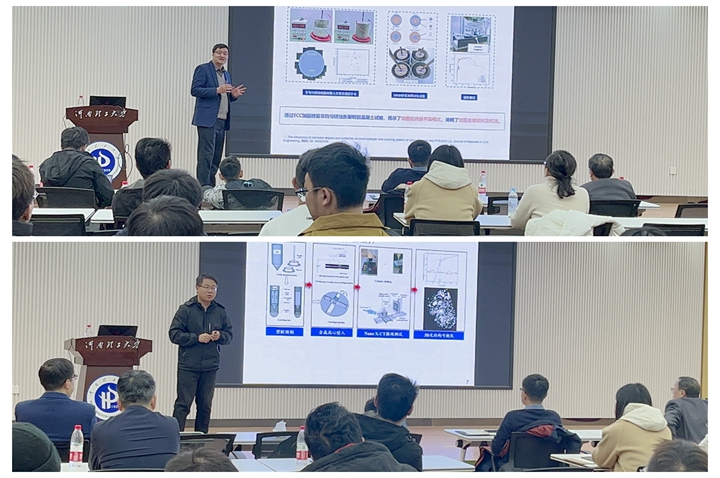 本网讯(通讯员 王鹏飞 桂世磊 罗树琼)11月26日上午,浙江工业大学教授付传清一行应邀在材料学院2103为材料学院师生作学术报告。报告会上,付传清作了题为《滨海服役混凝土结构耐久性诊断技术与延寿策论探究》的学术报告,钱如胜作了题为《非饱和水泥基材料孔隙表征及其气/液分布特性》的学术报告,相关专业教师、研究生和本科生参加了报告会。