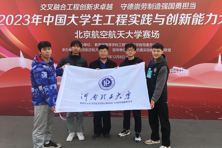 本网讯(通讯员 徐春浩 赵煜森)12月8日至9日,由教育部高等学校工程训练教学指导委员会主办的2023年中国大学生工程实践与创新能力大赛飞行器设计仿真赛项在北京航空航天大学举办,有来自全国约170所高校808支队伍参赛,经过选拔确定82支代表队300余名优秀学子进入总决赛,角逐最终奖项。河南省10余所高校共推出3支优秀代表队参赛,其中我校被推出的参赛队进入全国决赛并以全国第三名的成绩获得金奖,这是河南省在此项赛事中获得的唯一一个金奖,创我校参加该项赛事以来的最佳成绩。