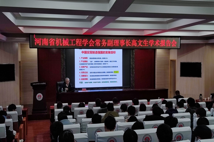 本网讯(通讯员 周洪亮)12月25日,应机械学院邀请,河南省机械工程学会常务副理事长高文生教授在该院205会议室作题为《中国机械工业发展报告》的学术报告。该院各系部教师和机械类研究生参加了此次报告会,报告会由该院院长明平美教授主持。