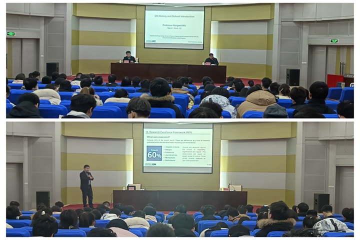 本网讯(通讯员 刘思楷 王蕊蕊)12月29日,应机械学院邀请,英国赫特福德大学教授吴宏伟在我校圆形报告厅作题为《英国高等教育教学、研究和知识交流评估》(Assessment of teaching, research and knowledge exchange in UK higher education)的学术讲座。机械学院能动系教师及研究生、本科生等百余人参加了本次讲座。本次讲座由机械学院副院长张安超教授主持。