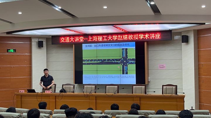 本网讯 (通讯员 郑聪灵)6月12日下午,应能源学院邀请,上海理工大学教授赵靖在该院104学术报告厅为师生作了题为《来上理做有趣的交通研究——以交叉口优化设计为例》的学术讲座,该院交通专业教师、研究生及本科生代表100余人听取了报告。讲座由交通工程系教工党支部书记李香红主持。