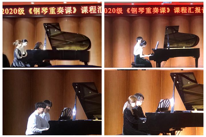 《舞台表演》和《钢琴重奏课》课程是音乐表演专业学生需要协同合作完成的专业技术课程,在教学中过程中,任课教师杨莉丽和李璟引导学生浏览大量中外曲目,并根据学生特点和学习程度选择了适合他们的作品,旨在培养学生的综合实践能力、探索创新能力。