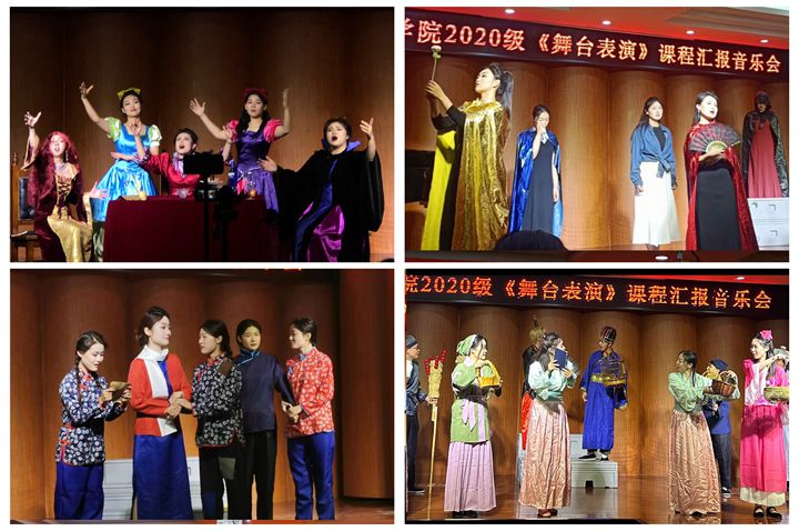 《舞台表演》汇报音乐会,学生共演唱了16首作品,剧目涵盖了民族歌剧、西洋歌剧、中国原创音乐剧以及经典话剧片段等。《钢琴重奏课》汇报音乐会以钢琴四手联弹为主,学生共同演奏了包括《无锡景》《彩云追月》《鹅妈妈组曲》等十首中外名曲。