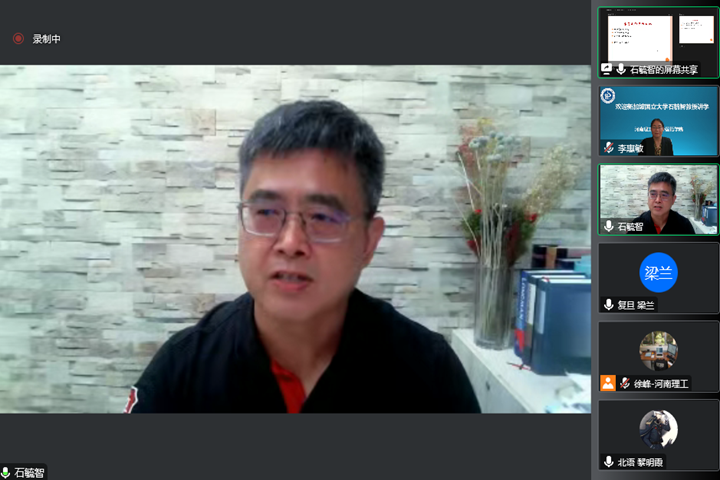 本网讯(通讯员 徐峰 曹旺儒)为进一步推进学院科研工作、提升学院教师科研能力,11月25日,新加坡国立大学教授石毓智通过腾讯会议为外国语学院师生作了题为“英汉概念化方式差别对语法的影响”的学术讲座。外国语学院全体教师和研究生以及来自复旦大学、北京外国语大学、广东外语外贸大学、四川外国语大学等其他高校的教授和博士生共同聆听了本次讲座并积极参与讨论。讲座同时通过哔哩哔哩网站进行直播,在线听众逾千人。讲座由该院院长李惠敏主持。