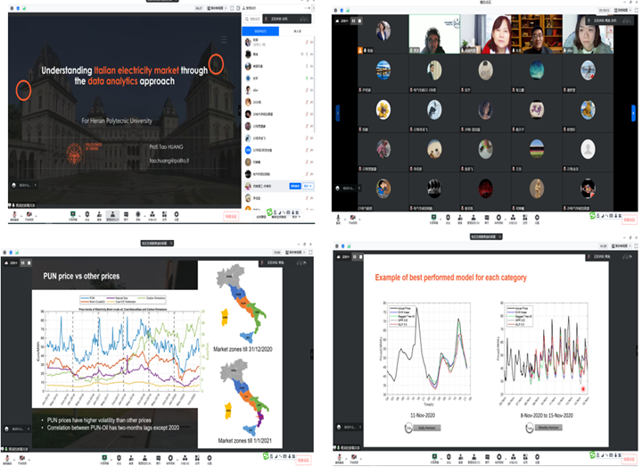 本网讯 (通讯员 张丽)应电气学院邀请,12月11日下午,意大利都灵理工大学教授黄涛在线作了题为《大数据技术在电力市场中的运用》的学术报告,该院电气学科带头人、学科骨干教师、青年教师及研究生聆听了报告,报告会由该院副院长朱军主持。