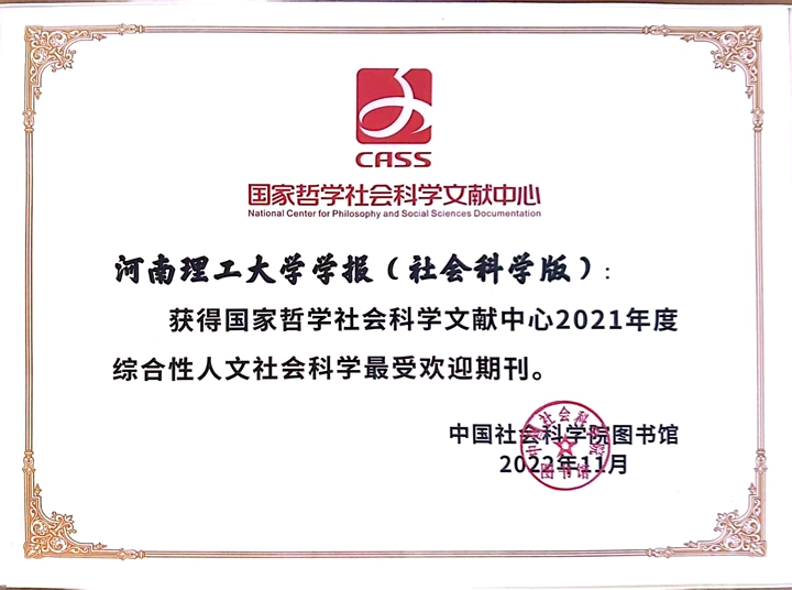 本网讯 (通讯员 杨延麟)近日,国家哲学社会科学文献中心发布《中文期刊用户关注度报告(2021年度)》。《河南理工大学学报(社会科学版)》荣获 “2021年度综合性人文社会科学最受欢迎期刊”。这是刊物获评“2020年度综合性人文社会科学最受欢迎期刊”后,再次获得该项荣誉。