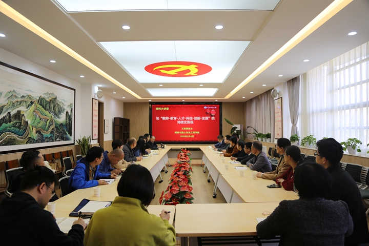随后,王家耀院士为全体研究生导师作了题目为“论‘教师-教育-人才-科技-创新-发展’的持续发展观”报告。他说,党的二十大报告指出,“实施科教兴国战略,强化现代化建设人才支撑”,为教师、教育、人才、科技、创新提出了新方向,赋予了新使命。王院士充分肯定了学院近年来取得的成绩,特别强调教师与教育是整个教育系统中的土壤与基石,只有把好教师的关口,抓好教育的重点才可以结出创新的硕果。在此基础上,王院士就教师队伍建设提出“使命崇高、师德优先、业务精湛、热爱教育、终身学习”五句话要求,为测绘学院教师下一步发展提出了指导意见。