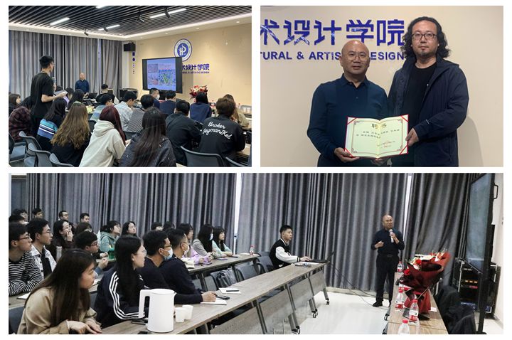 本网讯 (通讯员 王维天 袁凯)5月5日下午,岭南生态文旅股份有限公司总工程师汪华清教授应邀在建筑与艺术设计学院二楼会议室,为师生们作了题为《时间·空间,变化的景观——东莞东城文化中心公园项目透视》的学术报告,岭南生态文旅股份有限公司华北区域运营中心总经理程新想及相关专业师生参加报告会,环境设计系主任王维天主持报告会。