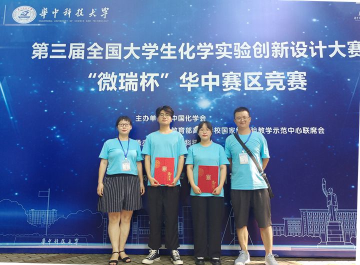 本网讯 (通讯员 杨丹)7月22日,第三届全国大学生化学实验创新设计大赛“微瑞杯”华中赛区竞赛复赛在华中科技大学落下帷幕。我校由毕文彦老师和练佳佳老师指导的“追光者”队伍(晋靖涛、陈玉满、杨丹)顺利通过初赛进入复赛,荣获华中赛区二等奖。