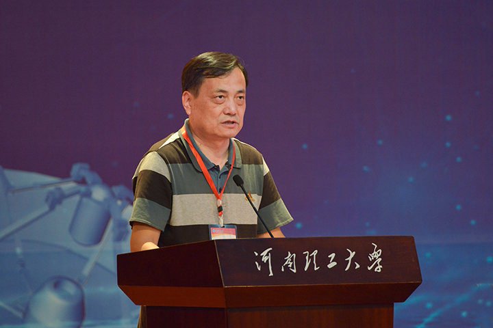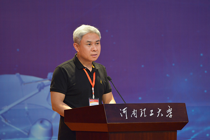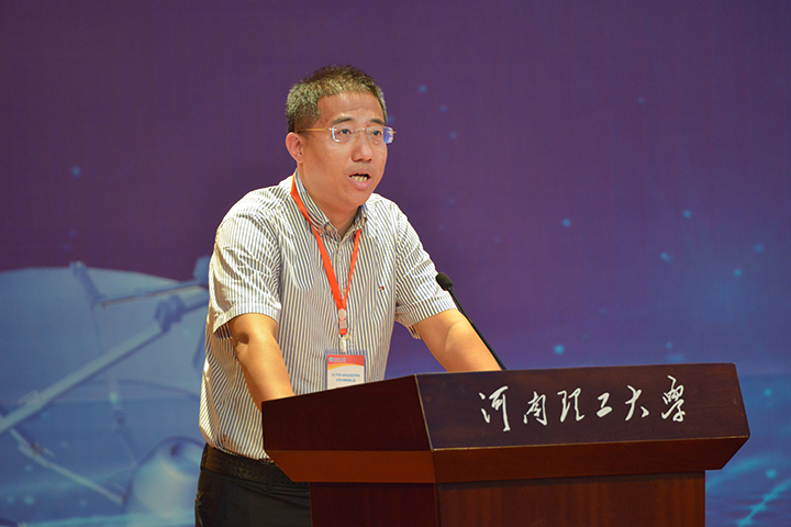 河南省测绘学会测绘教育与科普工作委员会主任委员、战略支援部队信息工程大学地理空间信息学院教科处处长阎晓东致开幕辞