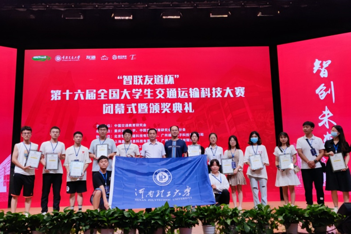 本网讯(通讯员 谷丽婷 朱成明)7月24至25日,“智联友道杯”第十六届全国大学生交通运输科技大赛决赛在重庆交通大学南岸校区举行。我校9件作品入围大赛决赛,获得一等奖1项,二等奖2项,三等奖6项,入围决赛作品数量及获奖作品数量均创我校参赛历史新高,同时成为本届比赛入围决赛作品数量最多、获奖数量最多的高校。