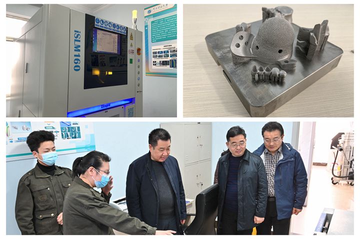 金属3D打印机落户一附院医学临床技能培训考试中心。近日,一附院党委书记杨永国、院长于拥军等到3D打印科研教学实训基地进行指导。杨永国、于拥军一行来到技能中心五楼的3D打印科研教学实践基地参观了解3D打印运行原理,并讨论了骨科植入物及骨科导板的设计制作。杨永国指出要在后续的科研及教学中,将重心放在个性化设计,针对临床需求打印出符合临床应用的成品并投入使用,为患者提供可靠的医学技术支持。于拥军强调要充分发挥3D打印教学资源,加强院校共建,通过培养掌握3D打印的科学技术人才,更好的服务于医疗、教学、科研等工作。