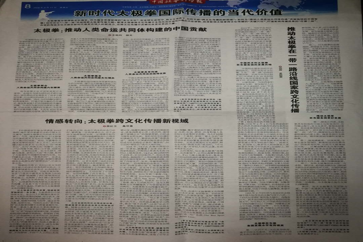 本网讯(通讯员 王柏利)近日,我校三位博士关于太极拳国际传播的重要研究成果,在《中国社会科学报》整版刊发。《中国社会科学报》是由中国社会科学院主管主办、中国社会科学杂志社编辑出版,面向全国理论界、学术界的大型理论、学术报纸,是新中国成立以来第一份全国性的理论、学术专业报纸。此次对我校成果进行整版刊登,在学校尚属首次,标志着学校太极文化研究迈上新台阶。