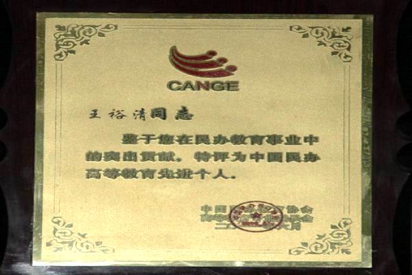 自2002年学院建立以来,作为河南省第一所按照新机制和新模式举办的独立学院第一任院长,王裕清与万方学院领导班子成员同舟共济、团结一致,带领全体师生员工致力于万方学院的建设、改革与发展,短短九年内,万方学院在整体实力、人才培养等方面取得了突出成绩。同时,他也非常关心中国民办教育的建设与发展,被推举为中国民办教育协会高专委委员和河南省民办教育协会副会长,为河南省乃至中国民办教育的健康持续发展作出了积极的贡献,赢得了省内外民办教育界的高度评价和尊重。为表彰王裕清为中国民办教育发展所作出的贡献,中国民办教育协会特授予他“中国民办高等教育先进个人”荣誉称号。