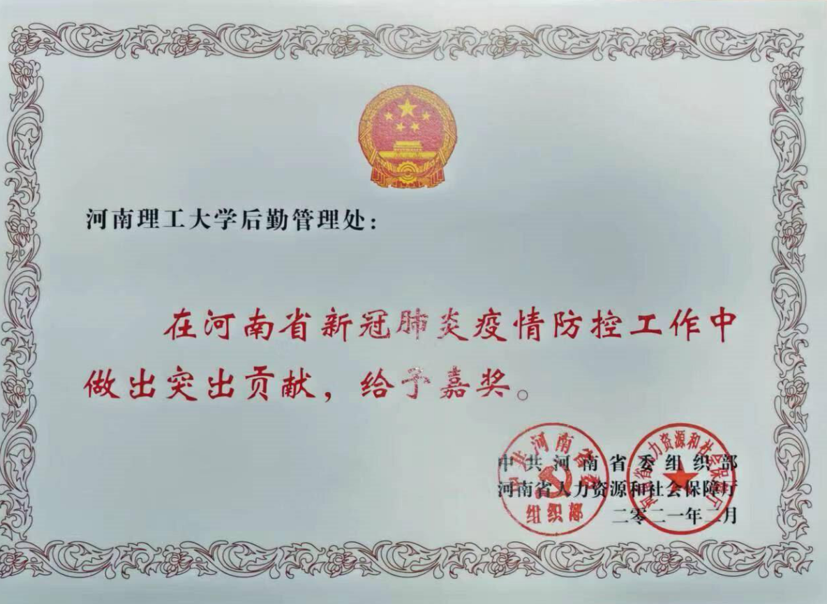 积极践行“特别能吃苦、特别能战斗、特别能奉献”的后勤精神,注重在急难险重等重大工作中历练“站排头、勇担当”的后勤本色,高质量完成了省委领导来校调研、学校110周年校庆、河南省文明校园标兵迎检等重要重大活动的校园绿化保洁、电力保障、通讯保障、食宿接待和校园基础设施检修维护等后勤服务保障工作。特别是近几年的防灾减灾及疫情防控工作中,“硬核”后勤人坚定守护在维护学校安全稳定第一线,主动投身防灾减灾及疫情防控工作前线,保障了学校安全稳定,确保了师生生命财产安全,获得河南省新冠肺炎疫情防控工作嘉奖表彰。
