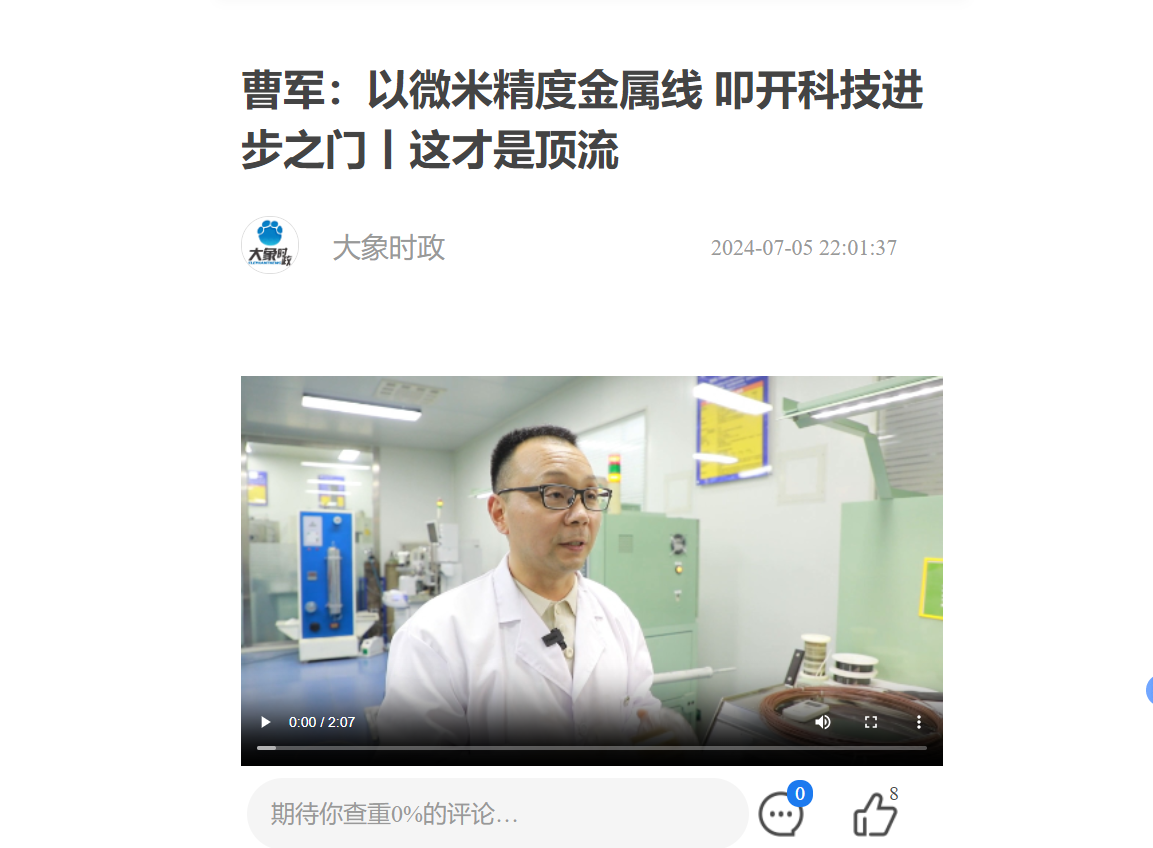 曹军表示,该项目承担了竖引连铸组织演变及装备开发、微细丝线材形变特征及装备开发等关键技术研究,该研究成果突破了高性能铜基/贵金属基丝线材制备加工核心技术瓶颈,开发出具有自主知识产权的熔铸、性能调制、连续稳定变形控制等成套制备及加工技术。