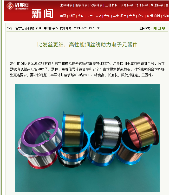 高性能铜及贵金属丝线材作为数字和模拟信号传输的重要导体材料,广泛应用于集成电路键合线、医疗器械有源线束及各种电子元器件,随着信号传输密度和安全可靠性要求越来越高,对丝线材综合性能提出更高要求,要求线径细(半导体封装领域≤20微米)、精度高、长度长,致使其稳定加工困难。